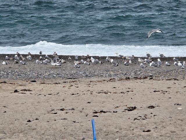 어제 밤사이 비는 그쳤지만 하늘에는 짙은 구름이 잔뜩 끼었고 바닷바람이 심하게 앞을 가로 막는다. 먼 바다는 잘 보이지 않지만 가까이에는 검푸른 바다에 성난 파도가 하얀 거품을 내뿜으며 해안으로 밀려오는 모습은 감동적이다. 동네 주민들은 긴 장대 끝에 쇠갈고리가 달린 장비들을 가지고 파도가 몰아치는 해안가에서 연신 무언가를 걷어 올린다. 자세히 살펴보니 물고기는 아니고 파도에 밀려오는 미역 낚시질을 하는 것이다.